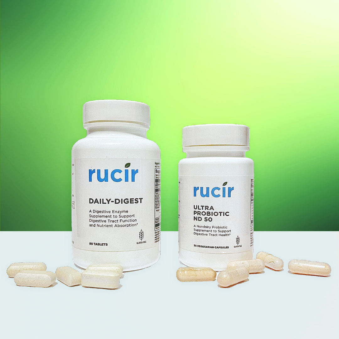 Rucir's gut health bundle comprises of a probiotic and digestive enzyme which can help you restore your gut health, improve your digestion and help you get relief from daily bloating, gas and constipation.
